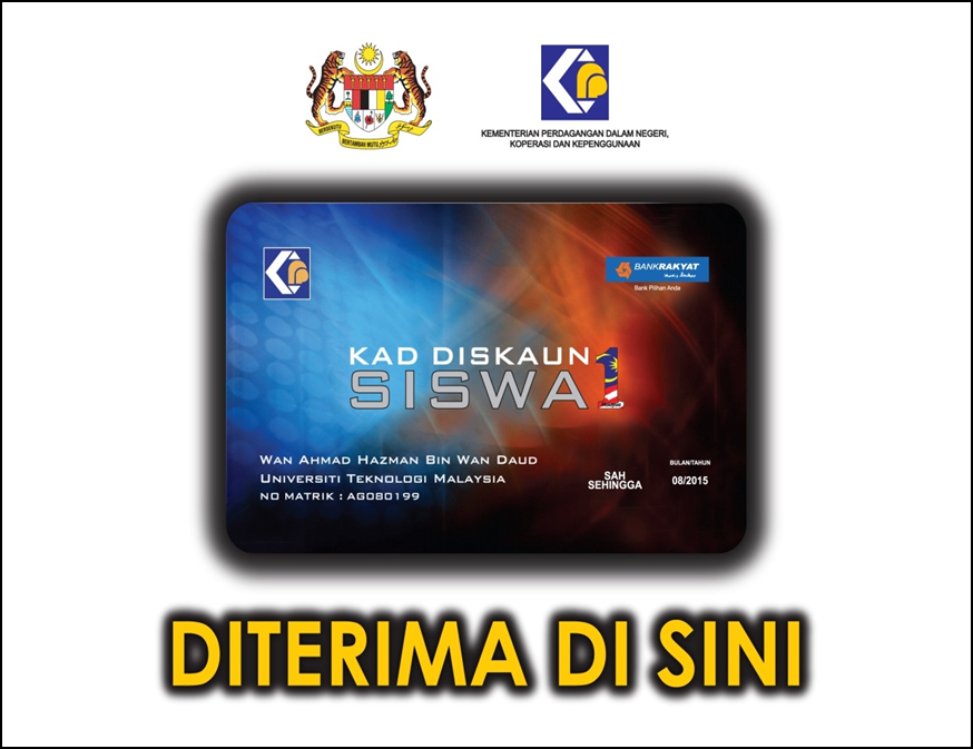 Apa itu kad siswa 1 malaysia. One card two functions debit card and discount card accepted by mastercard merchants worldwide purchase at non halal categorized merchants are not allowed. Kad diskaun siswa 1malaysia kads1m diwujudkan oleh kementerian perdagangan dalam negeri koperasi dan kepenggunaan kpdnkk dengan objektif untuk membantu meringankan perbelanjaan siswa di institusi pengajian. Pelajar layak menerima bantuan bppt adalah digalakkan untuk membuat pembelian buku alat tulis dan alatan komputer. Kegunaan kad diskaun siswa 1 malaysia yang pelajar tak tahu pada 19 1 2017 jumlah.