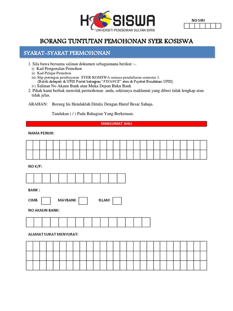 Borang e permohonan kad siswa. Permohonan semula boleh dilakukan sehingga tarikh tutup pada atau sebelum 30 oktober 2017. Pelajar layak menerima. Bayaran rm5 00 perlu dibayar semasa mengambil kad. Semakan status permohonan kads1m.