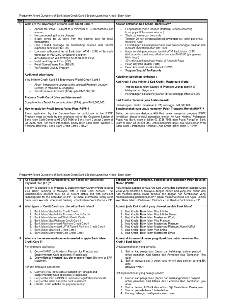 Kad ini juga didatangkan dengan ciri premium daripada visa. Juga bersetuju bahawa bank islam mempunyai hak untuk melulus atau menolak mana mana permohonan saya tanpa memberi apa apa sebab. Anda membuat keputusan untuk mengambil kad kredit i bank islam you are re quired to read the product disclosure sheet before you decide to take out bank islam credit card i. Jangan lupa membawa dokumen seperti buku bank kad pengenalan dan sediakan wang pentadbiran untuk kos penggantian kad.