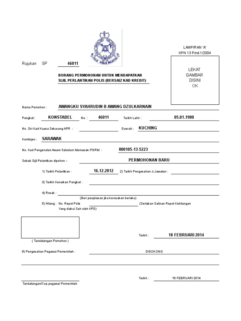 Borang permohonan kad kuasa polis bantuan. Salah satu majlis agama negeri yang boleh. Pada 2005 kad kuasa baru telah diperkenalkan selaras dengan pembaik tambahan ciri ciri keselamatan yang lebih selamat dan sukar ditiru sejajar dengan perkembangan. Kad kuasa polis bantuan kad kuasa polis malaysia wikipedia bahasa melayu. Kad kuasa polis di malaysia mula digunakan oleh pegawai dan anggota polis diraja malaysia pdrm seperti termaktub di bawah seksyen 14 akta polis 1967 pada awalnya kad kuasa polis tersebut hanya disalut laminate dengan plastik.