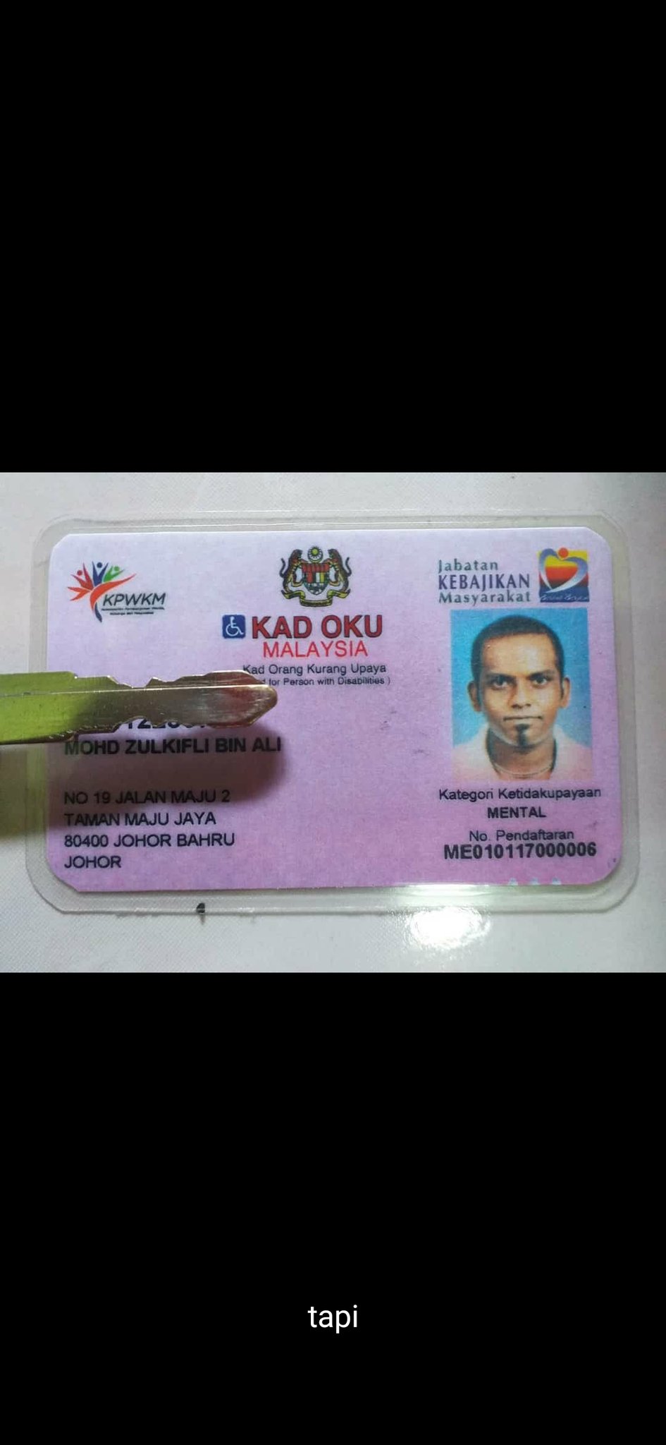 Tanpa kad oku oku tidak boleh memohon lesen memandu oku dan mendapat kelulusan pengubahsuaian kenderaan oku daripada jabatan pengangkutan jalan. Cetakan sub kategori pembelajaran pada kad oku bagi oku pembelajaran yang telah dinyatakan sub kategori dalam smoku atau di mana mana laporan bertulis. Mengikut akta orang kurang upaya 2008 orang kurang upaya oku termasuklah mereka yang mempunyai kekurangan jangka panjang fizikal mental intelektual atau deria yang apabila berinteraksi dengan pelbagai halangan boleh menyekat penyertaan penuh dan berkesan mereka dalam masyarakat. Iv penggantian kad baharu.