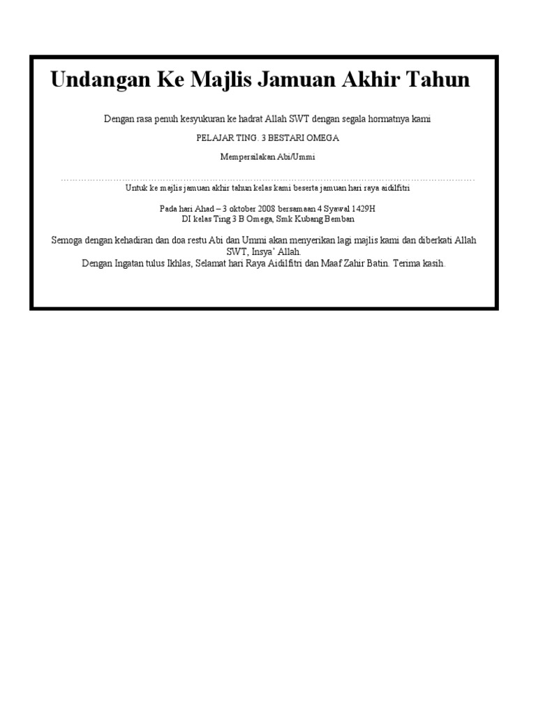 Contoh kad jamuan hari raya. Contoh brosur jamuan akhir tahun sinatoh. Majlis jamuan hari raya aidil fitri laman web rasmi kolej vokasional. The collection that comprising chosen picture and the best amongst others. Contoh kad jemputan rumah terbuka hari raya aidilfitri kad.