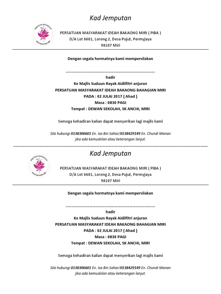 The collection that comprising chosen picture. Jemputan ke majlis pelancaran sambutan bulan kreanova ums tahun 2016. Sebagai setiausaha pibg pelbagai surat perlu dibuat sempena mesyuarat agung pibg yang akan diadakan pada hujung bulan ni cn sukacita berkongsi dengan anda contoh surat jemputan sebagai perasmi untuk mesyuarat agung tersebut. Kebanyakan imej ini adalah percuma manakala selebihnya hanya berharga 1 setiap satu.