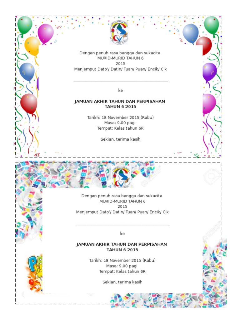 Contoh kad undangan majlis persaraan. Majlis persaraan boss 29 mac 2011. Dalam hati ku berkata kad jemputan adalah satu elemen yang paling penting untuk para jemputan menghadiri sesuatu majlis. Invitation card kad jemputan size 166mm x 90mm untuk majlis perpisahan tahun 6 terima kasih cikgu order dengan kami. Sama ada anda mencetak kad jemputan dan menghantarnya melalui mel atau menganjurkan majlis melalui media sosial canva dilengkapi dengan ciri untuk menghantar kad jemputan anda dengan cepat.