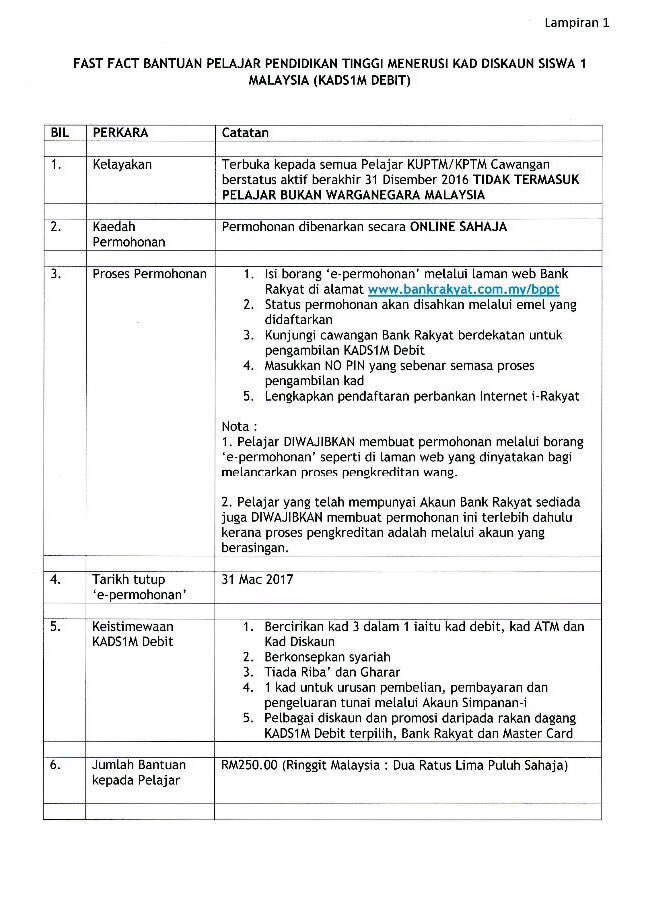 Dengan adanya kad siswa kad1sm ia akan lebih selamat berbanding penggunaan baucar buku 1malaysia pada tahun tahun sebelumnya. You will receive a transaction authorization code tac via sms on this number. Semakan online kad debit bank rakyat kad siswa pelajar 2020 mr 3 25 2020 kads1m 2019 semakan online permohonan 0 comments kads1m diwujudkan adalah satu inisiatif kerajaan untuk membantu mengurangkan kos pengajian para pelajar sama ada institusi pengajian ti. Can be used for retail transaction and online purchases.