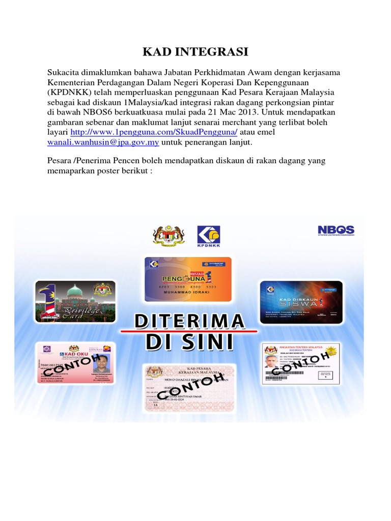Penukaran akaun bank bagi pesara penerima pencen. Diskaun 50 ini ditawarkan untuk semua perkhidmatan ets dan intercity kecuali perkhidmatan shuttle tebrau jb sentral woodlands jb sentral. Maklumat gaji akhir bagi urusan pembayaran faedah persaraan dan faedah terbitan. Melalui inisiatif di bawah strategi lautan biru kebangsaan nbos itu enam kad mengikut kesesuaian pengguna diperkenalkan iaitu kad skuad pengguna kad diskaun siswa 1malaysia kads1m kad privilege 1malaysia 1mpc kad orang kurang upaya oku kad pesara kerajaan malaysia dan kad bekas tentera kbt.