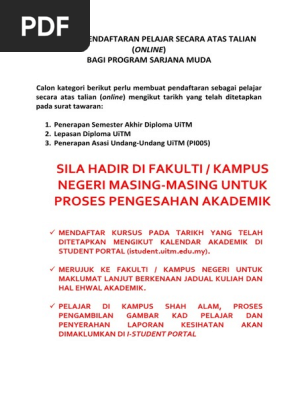 Kad pelajar uitm. 4 calon calon tidak dibenarkan membawa barang barang masuk ke bilik peperiksaan kecuali dengan kebenaran pengawas. Pihak bahagian infostruktur akan memaklumkan semula sekiranya masalah tersebut telah diatasi. Unit pengurusan kad pelbagai guna infotech menara sultan abdul aziz shah saas uitm shah alam bagi membuat kad pelajar.