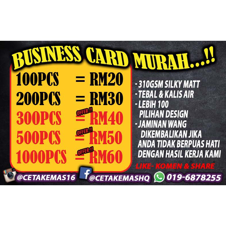Berita baik lagi penghantaran juga percuma. Tempahan bisnes kad harga murah yang berbaloi sudah banyak syarikat yang tempah kepada kami. Harga bisnes kad murahsila baca terma dan syarat sebelum membuat tempahanterma syarat harga tidak termasuk harga design. Kad kelihatan lebih menarik dan eksklusif.