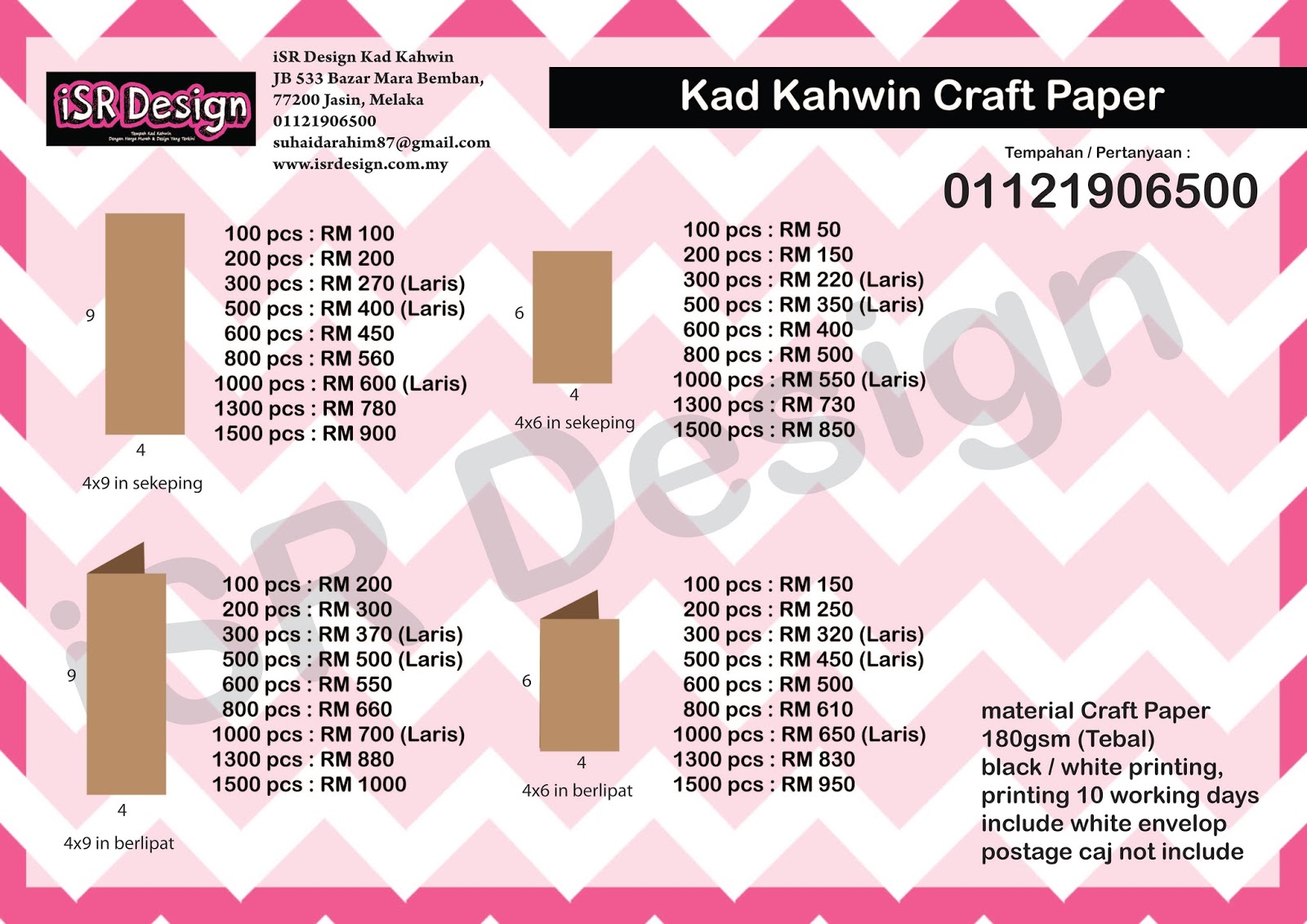 Harga kad kahwin craft paper. Kad kahwin retro 3 kraft senarai harga kad kahwin retro 3 kraft. See more ideas about kad kahwin wedding cards borders and frames. C1mtcraft400 2 side craft paper brown c1 79 x 109cm 400gsm kraft paper rm 450 for pack price 100pcs per pack rm 0 00. Menyediakan cetakan kad kahwin pada harga murah dan mampu milik.