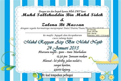 Warna ilustrasi kad ini adalah contoh kad kahwin berupa cadangan pereka semata mata. Oh iya cermati penggunaan kata amien di atas yhaa. Gembar gemburkan binaan dengan memberikan kad jemputan yang dicetak secara profesional. Free download template kartu undangan aqiqah by bayiku id.