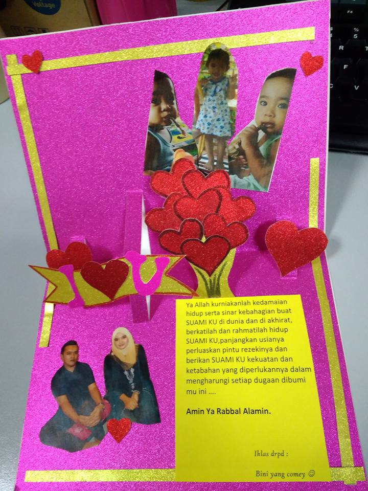Kad hari jadi suami. 19 september 2012 adalah hari jadi suami aku. Sama ada cakap secara terus tulis status di fb atau tulis dalam kad ucapan. Tak tahulah sempat buat ke tak hari ini. Bagi yang tak punya bajet lebih masakkan dinner yang penuh dengan kasih sayang pun dah cukup sebenarnya.