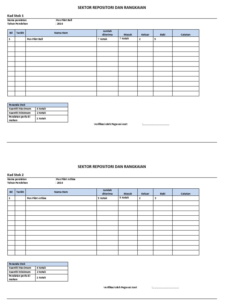 Borang pengurusan stok dan inventori prasekolah 2017. Kad kawalan stok berwarna putih. Bagi tujuan permohonan stok semua pesanan kepada stor unit hendaklah menggunakan borang kew ps 11 permohonan stok dalam dua salinan dengan salah satu daripadanya diserahkan kepada stor unit untuk diproses. Kew ps 3 kad kawalan stok kew ps 4 kad petak kew ps 4 kad petak warna kad kew ps 3 putih kew ps 4 hijau merah jambu untuk stok bertarikh luput kew ps 4 hijau merah jambu untuk stok bertarikh luput lokasi kad ditempatkan bersama stok kad petak.