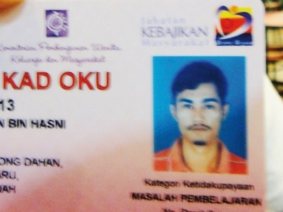 Kad oku hilang. Kad oku adalah suatu tanda pengenalan diri yang dikeluarkan kepada orang kurang upaya yang berdaftar dengan jabatan bagi memudahkan mereka berurusan dengan pihak pihak yang berkenaan. Kad oku saya rosak. Serius nak tekankan bahawa kalau hilang kad pengenalan ini memang sangat menyusahkan sebab banyak benda yang perlu dilakukan untuk memohon semula kad pengenalan baru bagi menggantikan yang lama hilang. Mohd shahidan mohd yusoh 35 dari batu 4 jalan maran itu yang mengalami masalah mental dipercayai hilang dengan menunggang sebuah motosikal jenis honda ex5 no plat ccg 8566 pada hari.