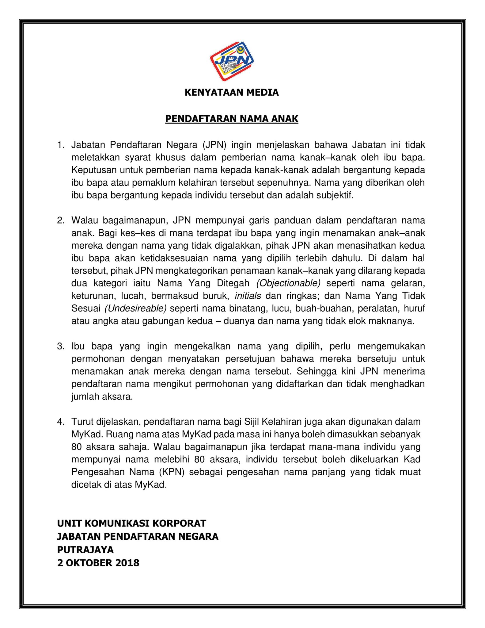 Kad pengesahan nama jpn. Cop rasmi jabatan organisasi media. Yang lama salinan laporan polis jika kad hilang 2. Nama pemohon dan nama pertubuhan media yang diwakili hendaklah ditulis di belakang gambar. Yang benar pengurus nama syarikat.