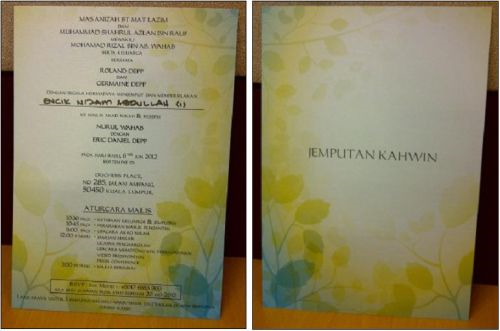 Arwah nurul ain natasha mazlan 26 sempat menyerahkan kad undangan majlis perkahwinannya kepada saya awal mac lalu. Rata ratanya memberikan komen positif terhadap rekaan kad tersebut yang dianggap simple tetapi cantik. Dia sendiri turun berjumpa rakan media kerana berbesar hati mengundang ke majlis majlisnya. Tomok nikah siti rahayu abas 1 julai 2011.