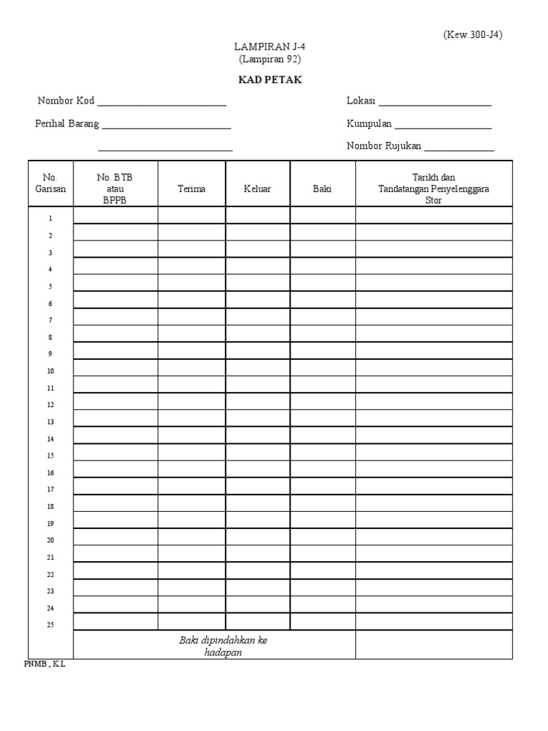 Mulai coba gratis batalkan kapan saja. Maklumat dalam daftar stok bekalan pejabat kew 314 kad kawalan stok kew 300 j3 dan kad petak kew 300 j4 hendaklah dipindahkan ke kad kawalan stok kew ps 3 dan kad petak kew ps 4 mengikut pp 5 2009 tatacara pengurusan stor. 3 0 kuatkuasa peraturan ini berkuatkuasa serta merta. 300 j3 stor kawasan negeri daerah kad petak kew 300 j4 diselenggarakan dengan lengkap kemas kini.
