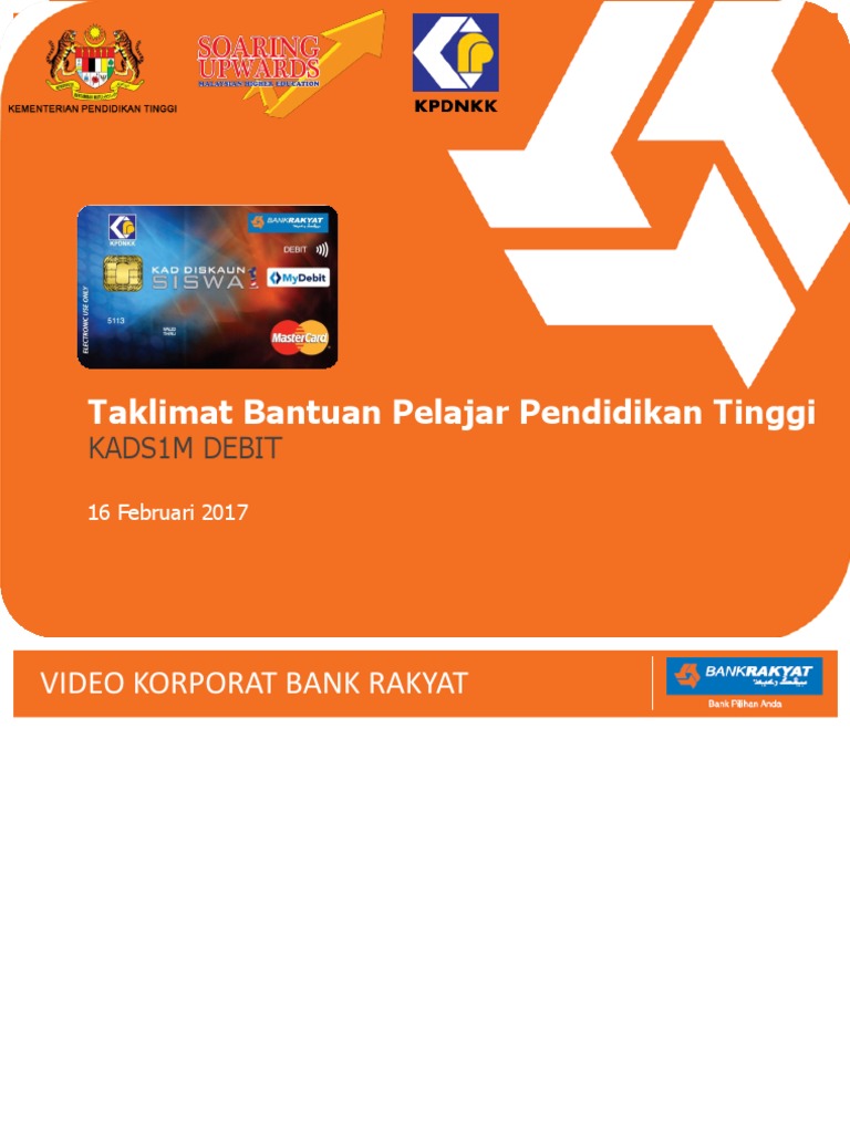 Kds1m ini mempunyai fungsi iaitu boleh digunakan sebagai kad diskaun untuk pembelian barang atau perkhidmatan boleh juga dijadikan kad debit kad atm sama seperti kad bank yang lain dan kad yang mengantikan baucer buku berjumlah rm250 00. Permohonan boleh dibuat secara atas talian di laman web rasmi bank rakyat. Ciri ciri kad diskaun siswa 1malaysia kad debit i diskaun siswa 1malaysia diskaun bagi pembelian barangan dan perkhidmatan terpilih. Ya ianya dibenarkan kerana akaun simpanan untuk kads1m debit dan akaun simpanan kad combo i bank rakyat adalah dua akaun yang berbeza.