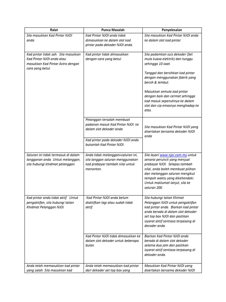 Untuk mengaktifkan baucar kad prabayar melalui sms sila ikuti arahan dibawah. Kad pintar njoi harga promosi ditetapkan oleh pihak njoi set decorder 1 tahun waranti harga termasuk gst 6 tertakluk kepada terma syarat cas pemasangan pengaktifan rm100 kos dibayar semasa hari pemasangan call sms whatsapp norman 016 3444155. Contoh 111 901209090990 1234567891010101 tunggu sms pengesahan baki njoi prepaid anda. Njoi mengandungi dekoder satelit kad pintar dan alat kawalan jauh.