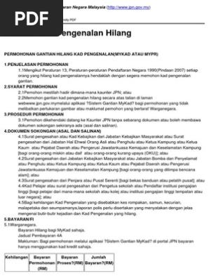 Panduan buat anda yang mengalami kehilangan kad pengenalan atau my kad. Sistem akan memaparkan maklumat pemohon seperti nama no. Mykad boleh disiapkan dalam tempoh 30 minit bagi pemohon yang memilih untuk membuat kutipan mykadnya di ibu pejabat jpn dan jpn yang mempunyai mesin cetakan teragih. Mungkin ramai di antara kita yang masih tidak mengetahui tentang maklumat bayaran harga serta garis panduan yang betul untuk membuat permohonan menggantikan kad pengenalan iaitu mykad yang hilang.