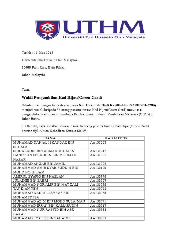 Cidb kini telah mengambil langkah proaktif dengan menambah saluran bayaran untuk kemudahan pengguna. Semak masuk maklumat login kembali id majikan. Untuk pengambilan kad personel binaan individu sila bawa. Pekeliling kursus kad hijau cidb bil 1 2000 rujuk gambar pekeliling kursus kad hijau cidb bil 1 2001 rujuk gambar denda rm 5 000 dikenakan kepada kontraktor utama dan personel sekiranya bekerja di tapak pembinaan dengan tidak memiliki kad hijau yang sah.