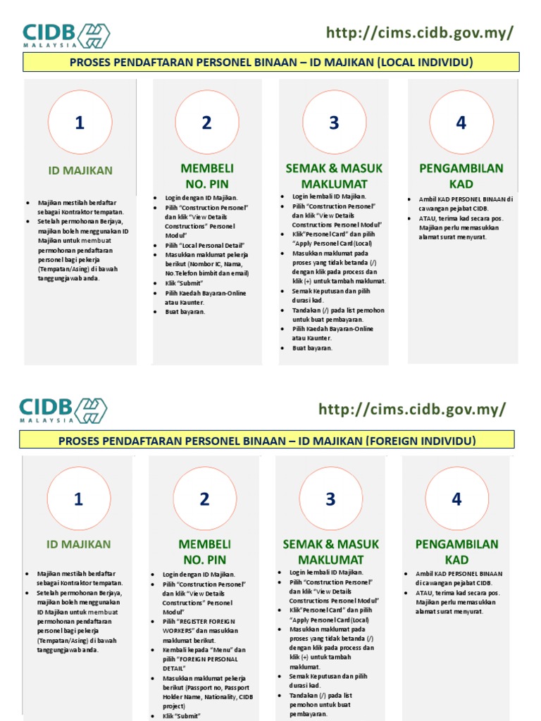 Assalam sy baru je pegi cidb kelantan hari ni 19 11 2017 bermula bulan 7 2017 cidb dah perbaharui sistem ni laman web yang org cidb bg td cims cidb gov my mula mula kena register sbg pengguna baru lepas tu sign in dan seterusnya. Kursus pengurusan bisnes kontraktor cidb hr skill training consultancy sdn bhd 40 mata ccd cidb 9 12 7 2012 pusat latihan hr temerloh 07 13 2012 kursus sicw kad hijau cidb 8 jun 2012 jkr daerah temerloh. Satu 1 keping gambar warna saiz passport. Keupayaan kewangan keupayaan teknikal operasi perniagaan dan pengurusan perniagaan.
