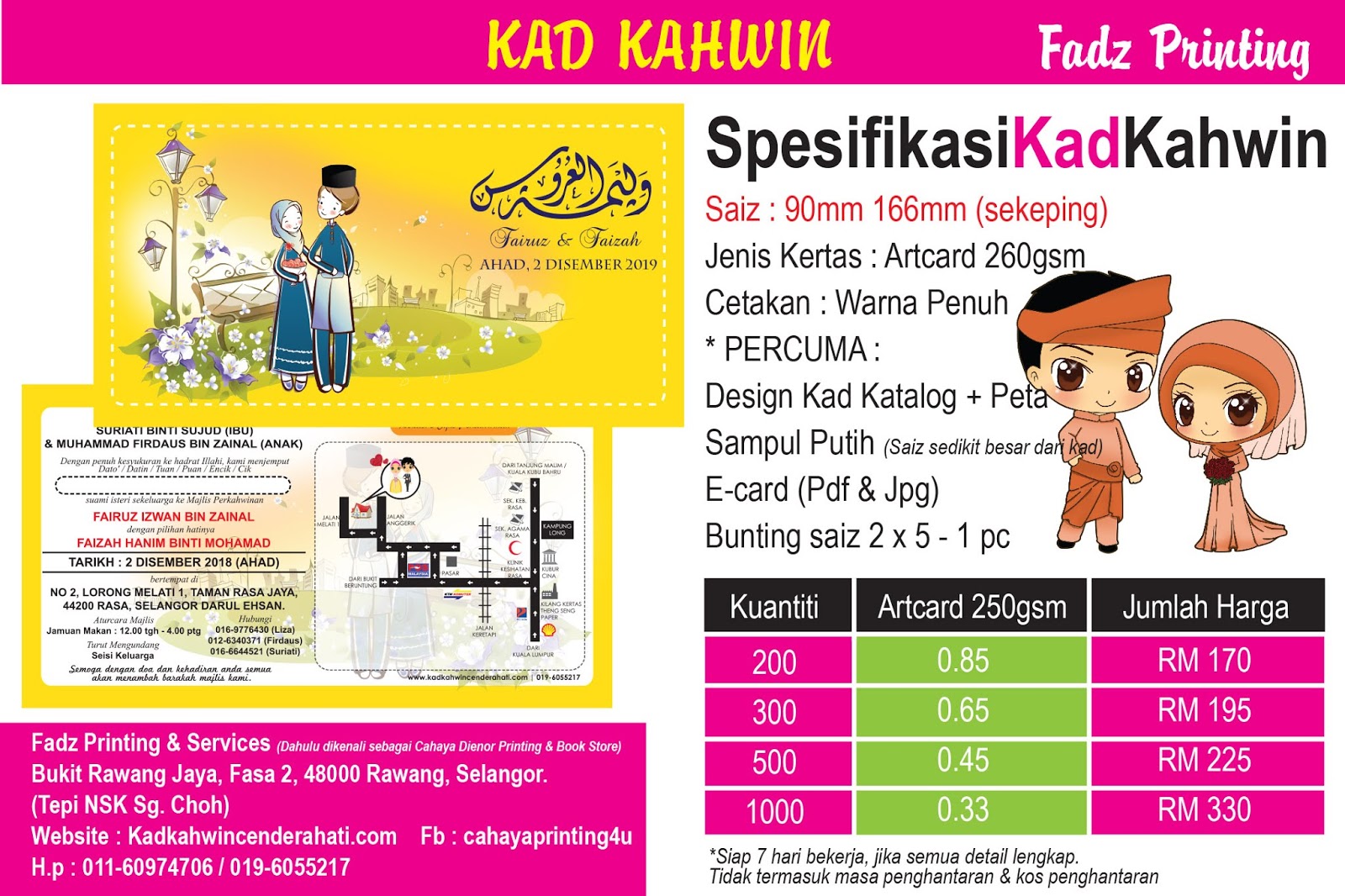 Promosi kad kahwin 2019. Kad 4 x 6 sekeping artcard 260 gsm warna penuh siap sampul putih 1 000 pcs rm 190 dicatat oleh fadz printing di 1 38 pg. Promosi kad kahwin jimat. Promosi kad serendah 35sen masih diteruskan. Showing 1 to 2 of 2 1 pages enquiries.