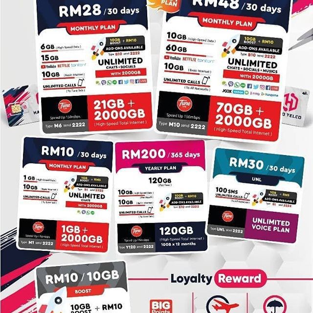 Penghantaran percuma ke seluruh malaysia. Bila anda langgan plan bulanan rm10 rm28 dan rm48 anda dapat free unlimited chat sosial dan music high speed mengikut plan anda kelebihan bila anda guna whatsapp facebook instagram ia tidak akan guna data utama anda jadi ini dapat menjimatkan data utama anda. Halotelco menawarkan plan prepaid yang amat berbaloi dan memberi nilai untuk wang anda serta memenuhi pelbagai jenis keperluan pengguna. Kini anda mendapat lebih banyak data untuk menonton video dan muzik kegemaran anda bermain games online dan bercakap kaw kaw dengan panggilan tanpa had ke semua rangkaian.