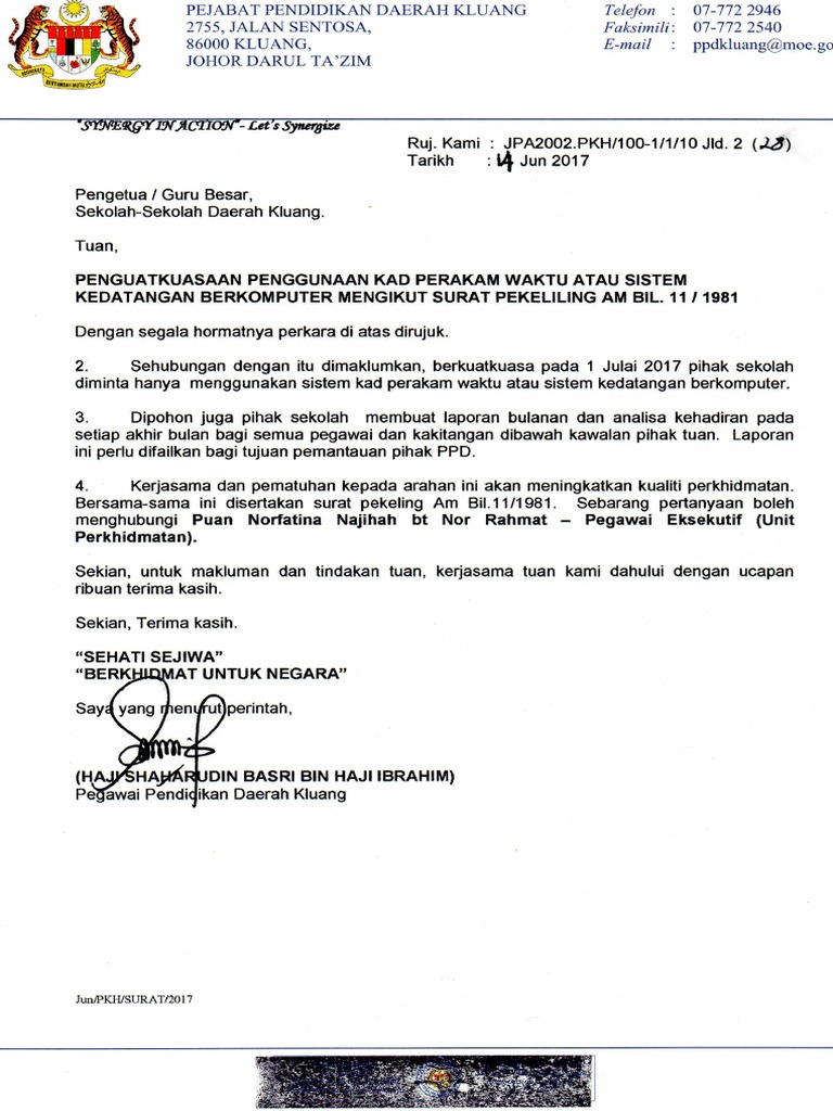 Surat pekeliling am bil. Ketua ketua setiausaha kementerian ketua ketua jabatan persekutuan ketua ketua badan berkanun persekutuan. 1 tahun 2004 penggunaan sistem perakam waktu elektronik di agensi agensi kerajaan. 1 tahun 2004 penggunaan sistem kad perakam waktu elektronik.