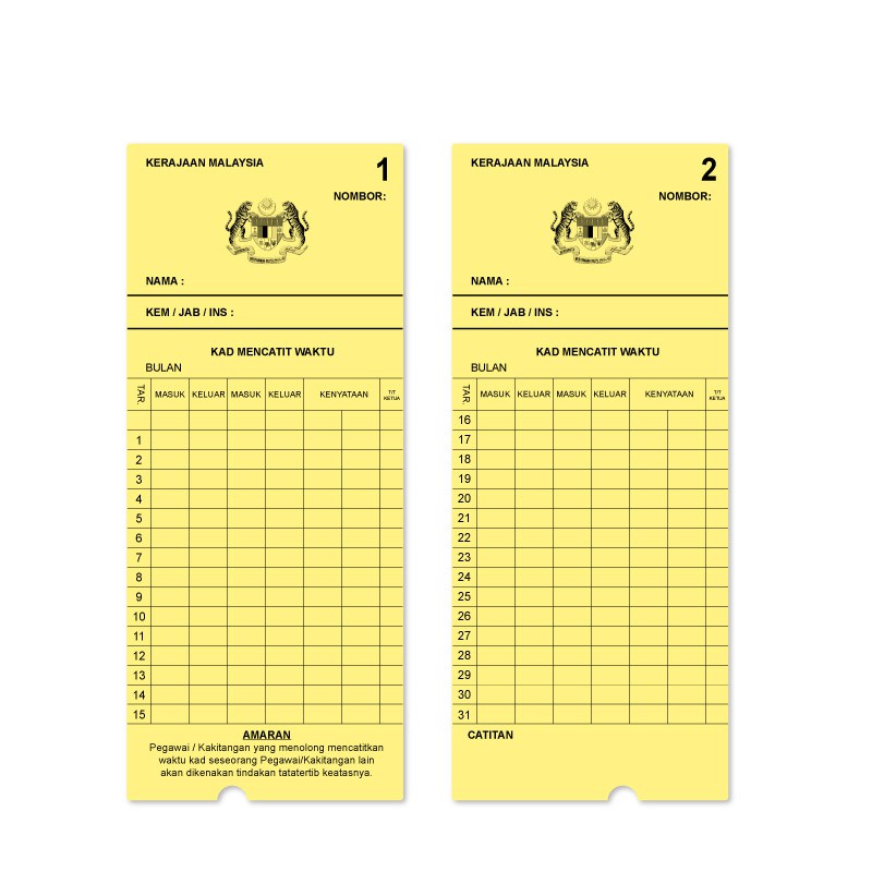 Template kad perakam waktu. 1 tahun 2004 penggunaan sistem kad perakam waktu elektronik di agensi agensi kerajaan. 11 tahun 1981 sistem penggunaan kad perakam waktu di pejabat pejabat kerajaan. 11 tahun 1981 garispanduan penggunaan kad perakam waktu 3. Kad perakam waktu surat pekeliling am bil.